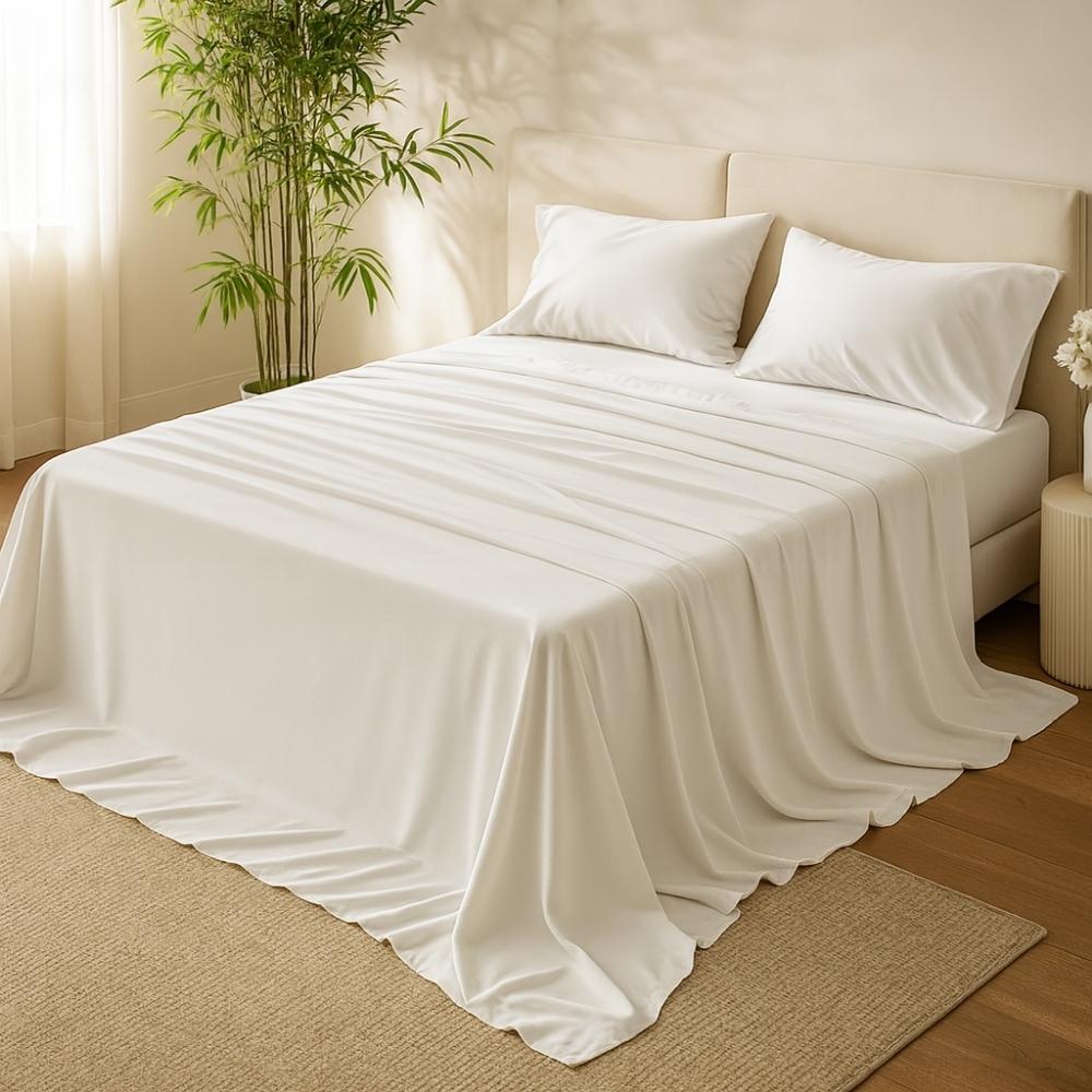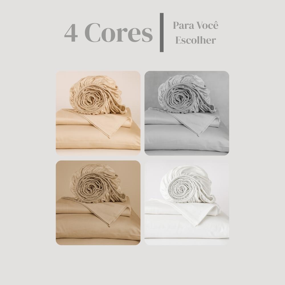 Jogo de Lençol 4 peças 100% Algodão Egípcio 500 Fios Toque de Seda Macio