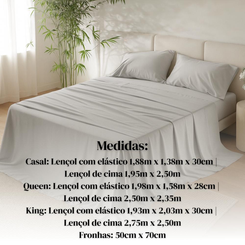 A escolha do tamanho do jogo de cama deve ser feita conforme o tamanho do seu colchão.