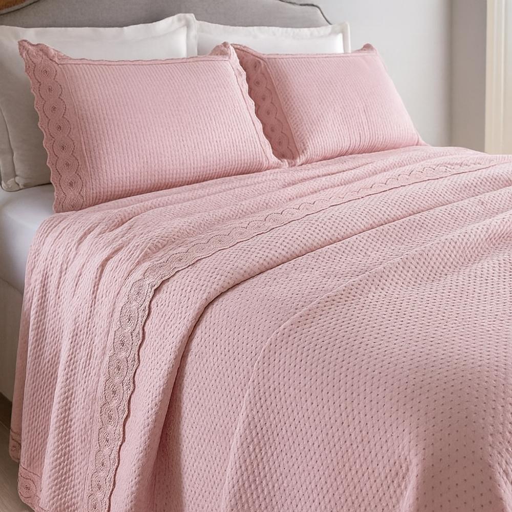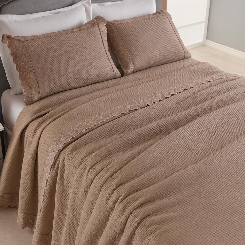 Kit Colcha Cobre Leito 3 peças 300 Fios com Bordado